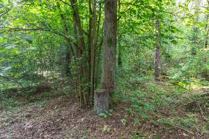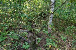 пень у березы почти на опушке
