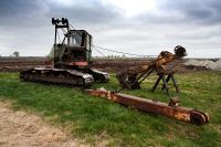 По совету егеря заехали на крыничку, где перекусили остатками сухого пайка (кукурузные хлопья с сушеной колбасой), запивая всё это чистой водой. Мужественно преодолев последний кусок песчано-гравийной дороги, оказалась в Теребличах. Хотя на часах было 4 часа пополудни, решили не рисковать и в магазине пополнили провиант, хотя ехать ещё предстояло более 40 километров. Музей посещать не стали – времени было потеряно уйма, хотя местные жители чуть ли не на ходу приглашали нас посетить местную достопримечательность. Отъехав из деревни, выехали на полюбившуюся уже брусчатку. С точки зрения «покушать», устроить перекус посреди дороги было очень грамотным решением. Сначала под действием тряски просыпается аппетит, потом, после перекуса, в животе всё утрамбовывается и пропадает тяжесть. Брусчатка плавно перешла в гравий, который был практически до д. Мочуль, ну а дальше, почти до стоянки должен был быть асфальт. По дороге проезжали через востанавливаемые мелиоративные каналы. зрелище печальное. груды земли. бульдозеры. и поломанные эксковаторы. Наконец то можно было отдохнуть. Впереди было равномерное вкручивание, событий происходить не должно было, живот был полон, поэтому только и оставалось, что крутить педали да смотреть по сторонам. А посмотреть было на что: практически в каждом дворе весь земельный участок был отдан под огромную теплицу, из которой торчали трубы, и иногда шёл дым. Это рос огурец-кормилец. Огуречный бизнес здесь очень хорошо развит. Уже в начале мая появляется первый урожай огурцов, и скоро сюда потянутся фуры закупщиков. А какой у кого урожай – видно по дому. Некоторые коттеджики не стыдно и в Минске поставить. Раз есть источник доходов, то и жизнь бьёт ключом. Полно детишек, домики ухоженные, люди приветливые.