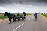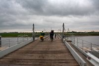 До д. Рубель ехали практически без приключений. Местные деревни с типовыми деревянными церквями, дорожки, преимущественно гравийные, перемежались асфальтом. В самой д. Рубель совершили набег на местные магазины в поиске суповых концентратов (безрезультатно). Как только начался асфальт, местны дедок на гужевой повозке решил устросить гонки. Гужевая повозка с легкостью разгонялась до 25 км/ч. Перед самым Бережным пересекли реку Горынь по интересному понтонному мосту. После Бережного была запланирована стоянка у базы отдыха на водохранилище. Свернув на нужную дорожку, облаянные собаками, через базу отдыха выехали на берег. Но в этот раз пришлось довольно долго искать подходящее место. Остановились на компромиссном месте на вершине песчаного холма. Это была самая поздняя стоянка, стали в около восьми вечера.